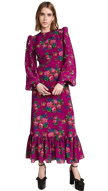 - Long puff sleeves with padded shoulders and button cuffs